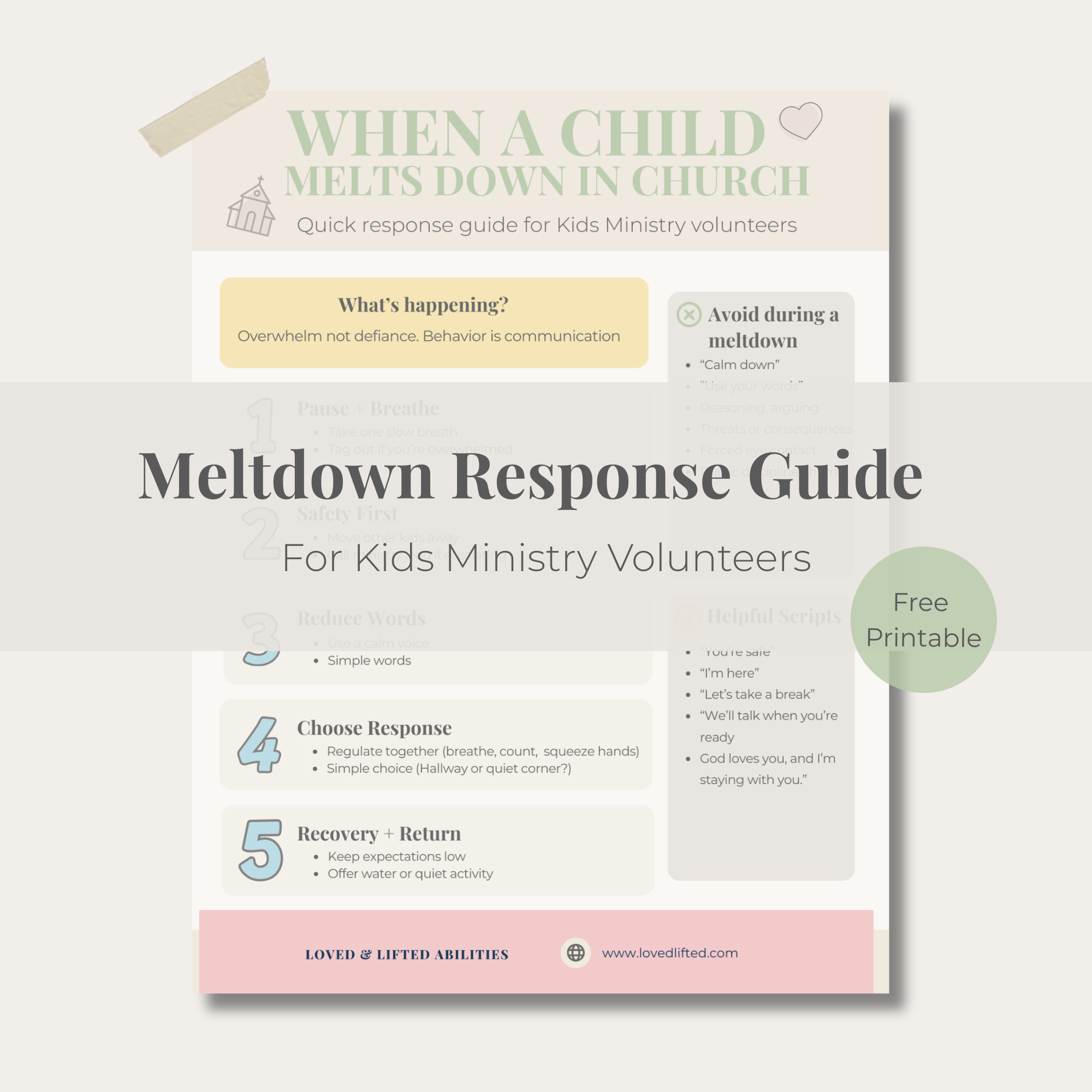 A simple one-page response guide that helps Kids Ministry volunteers respond calmly and confidently during meltdowns.